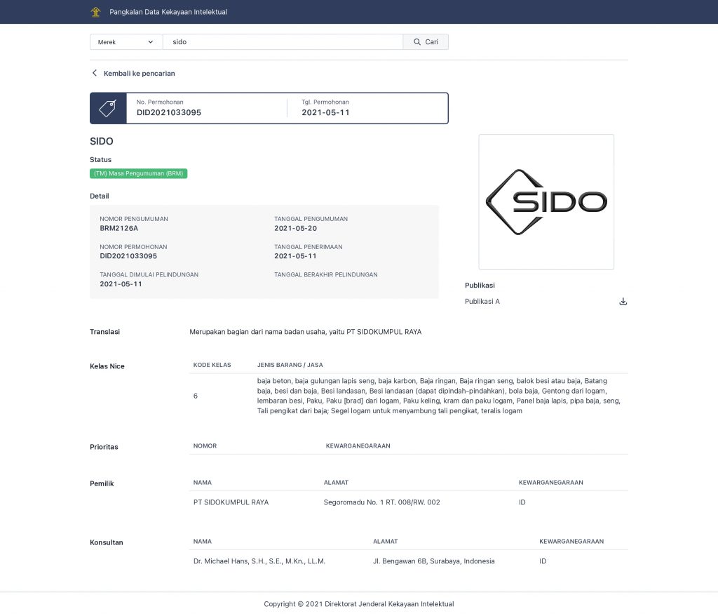 Agar SIDOKUMPUL Mesh lebih dikenal, memiliki keunikan tersendiri, dan mudah terbedakan dengan produk kompetitor, PT. Sidokumpul Raya mengembangkan produk dengan menambahkan marking pada setiap kawat baja bertuliskan “SIDO”. Merk SIDO kini telah terdaftar dalam Pangkalan Data Kekayaan Intelektual Indonesia sejak 11 Mei 2021.